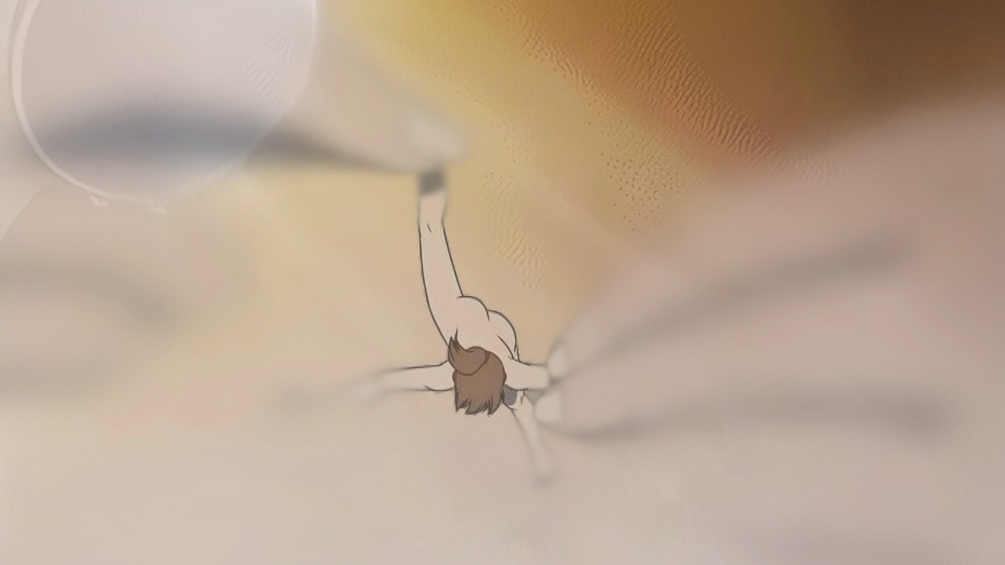 Setting: The famous gymnast Aly tries to train in a giant women's gym for a change, only to find herself in the palm of the hand of a curious giant gymnast, who takes tiny Aly to the showers with her.